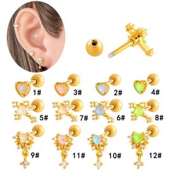 Mới tim Opal Tai sụn piercing Stud Bông tai thép không gỉ vách ngăn Tai đồ trang sức piercing