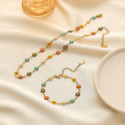 Thời trang 18K PVD vàng thép không gỉ đầy màu sắc hoa đính cườm Vòng cổ dopamine cô gái nhỏ Hoa Vòng Cổ Vòng Tay